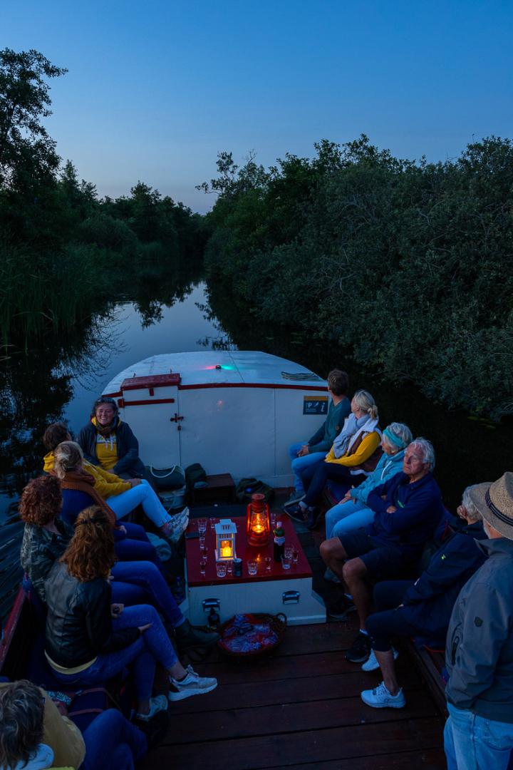 Iedere vrijdag- en zaterdagavond varen we met de praam van De Wartenster een schemertocht door Nationaal park De Alde Feanen. Onze fluisterpraam vertrekt met het laatste licht in de natuur vanuit Earnewâld of Warten. Terwijl de schipper verhalen vertelt, varen we langs het huisje van de familie Philips, langs de neergestorte lancaster en de beroemde plek van Sytze en Maaike. Ondertussen wordt het langzaam donker. Geniet van de geluiden, de lucht en sterren, dieren en verhalen. Deze tocht is ook te boeken voor groepen.