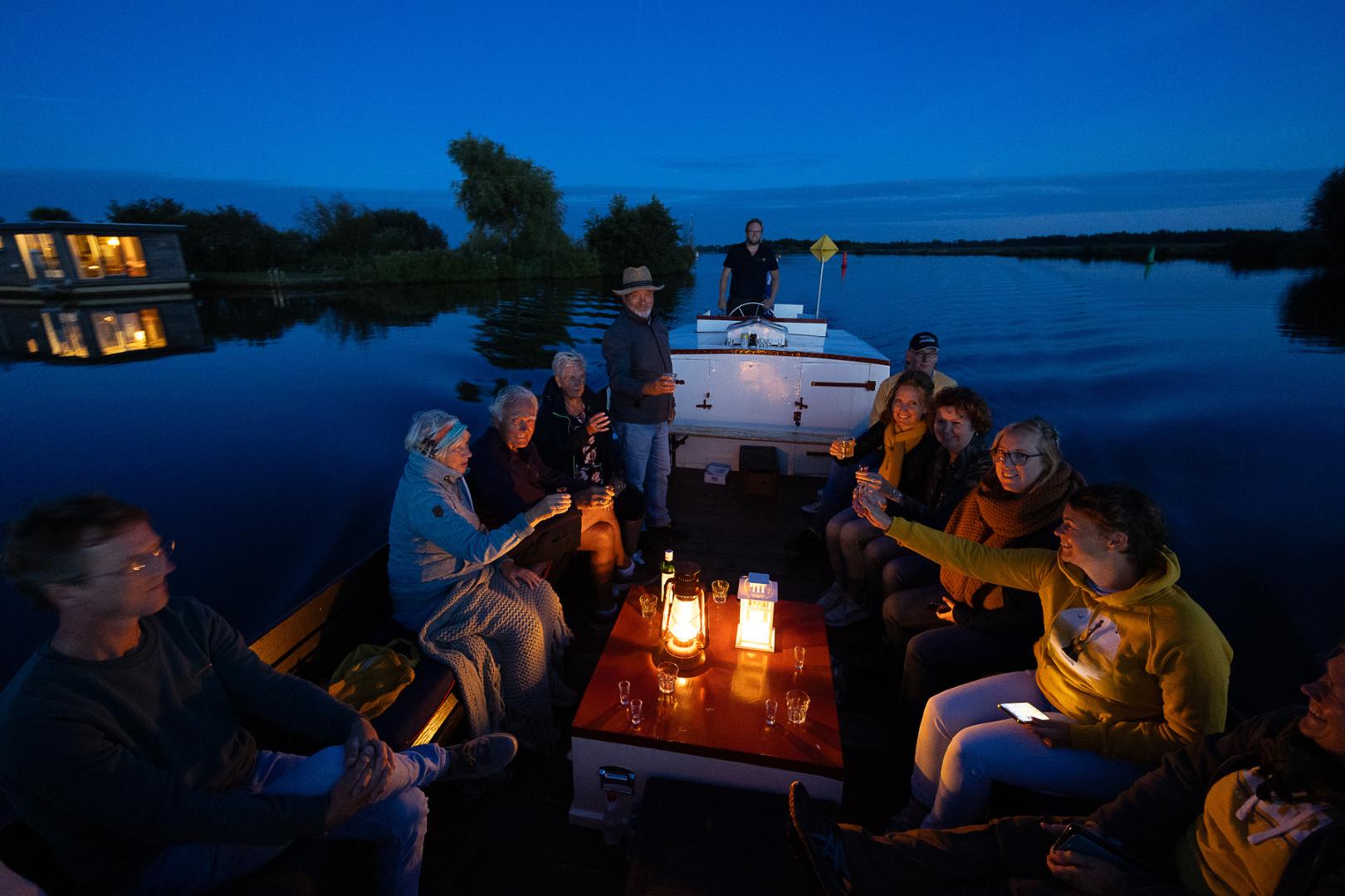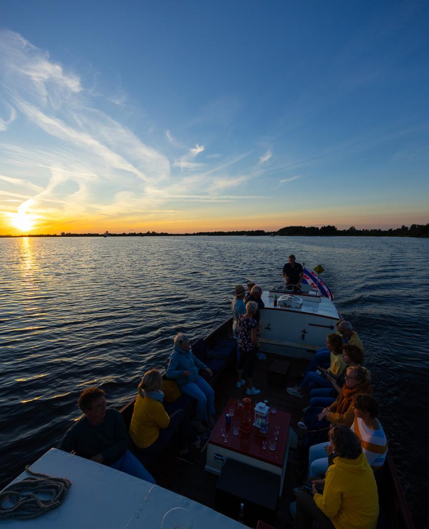De opstaptijd verschilt per vaartocht, afhankelijk van de zonsondergang. Voor de actuele opstaptijd neemt u contact op met Hotel Princenhof (0511 – 539206) of De Wartenster (058-2552056).