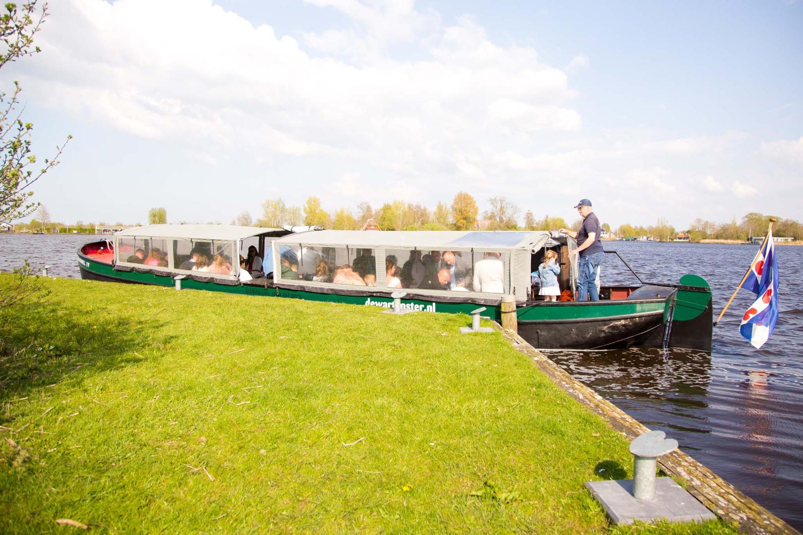 Een prachtig voorbeeld: jullie en jullie gasten stappen op bij De Wartenster en varen per praam naar het kerkje in Warstiens of Warten voor de huwelijksvoltrekking. De boot wordt feestelijk versierd, en na de ceremonie varen we gezamenlijk terug naar De Wartenster, waar het feest kan beginnen.